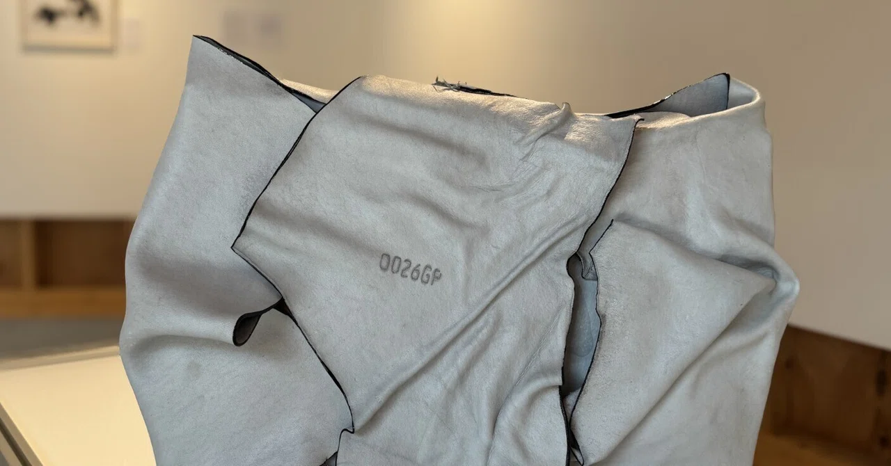 わたしは今回、ウェットブルーという、いわゆる「革になる直前の革」を素材にした立体的な触れる絵画作品3点と、5連作の平面作品を展示しました。ウェットブルーは普段あまり流通しない素材で、色々とテストした上で、水を含んだ状態で成形し、乾かすことで定着させました。